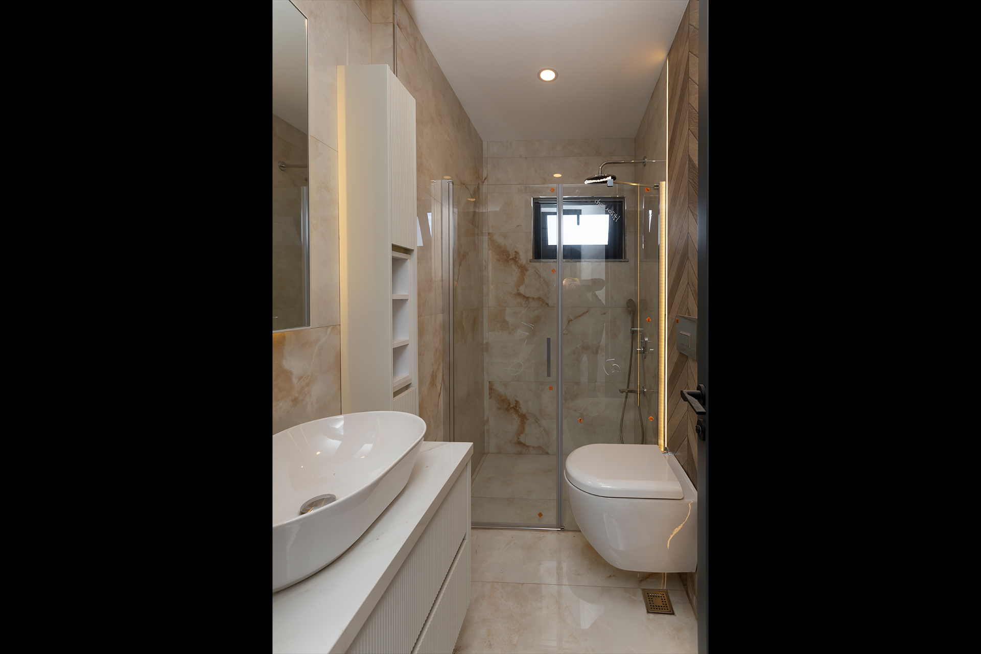 GOOGLE MAP LOCATIONOur villas are in the form of 4+1 and there are 1 living room, 1 separate kitchen from the living room, 1 guest room (with en-suite bathroom), 1 general bathroom, 1 technical room on the ground floor. Upstairs there are 3 guest rooms, 3 en-suite bathrooms, 2 dressing rooms, 1 Turkish bath, 1 laundry room, 1 air conditioner balcony and 1 terrace.