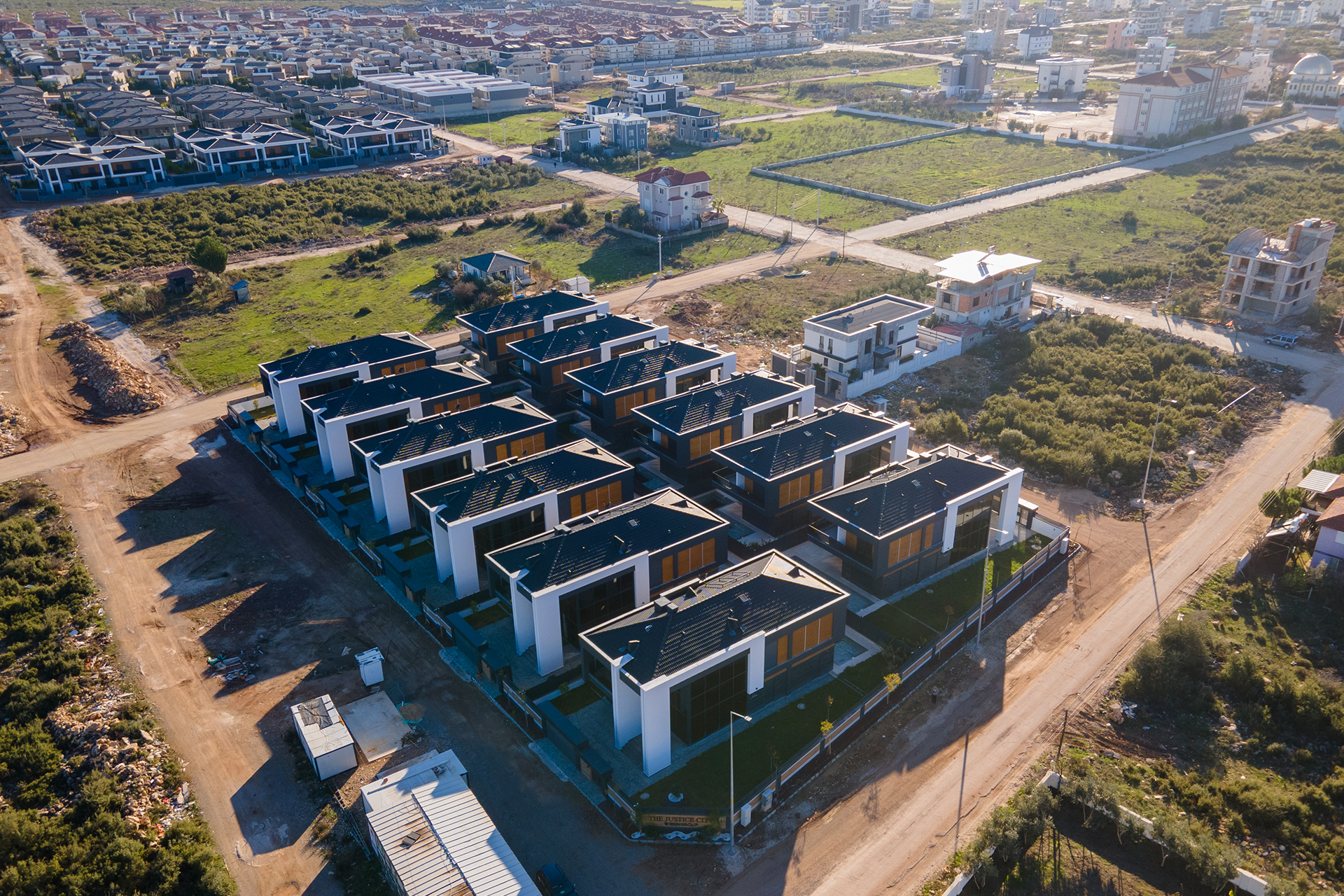 Our project is located in Antalya Province, Döşemealtı District, Çubuklı District. It consists of 12 villas on a total area of 5545 m2. Each villa has a building area of 320 m2 and also has a 31 m2 pool.