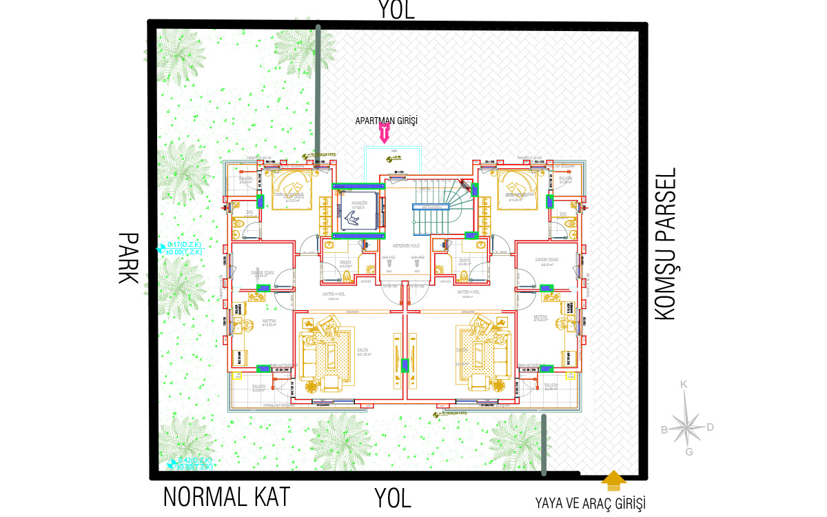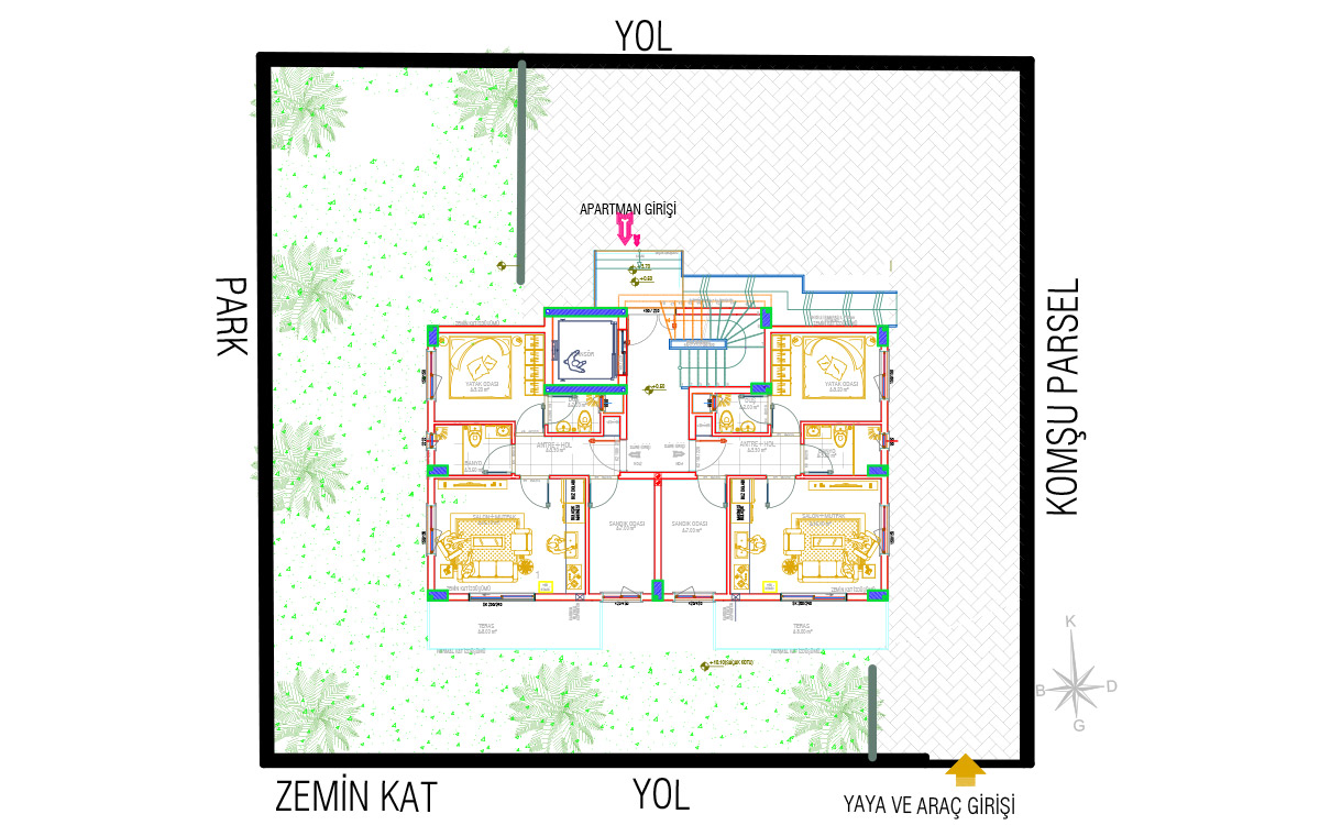 Our project is located in Antalya Province, Döşemealtı District, Yeniköy District. It will be built on a total area of 503 m2 with 1 block, 2 floors above the ground flat, and 3 floors in total. On the ground floor, 2 2+1 flats of 70 m2 (with en-suite bathroom and open kitchen). There are 4 2+1 flats on the floor of 100 m2 (with en-suite bathroom and open kitchen).