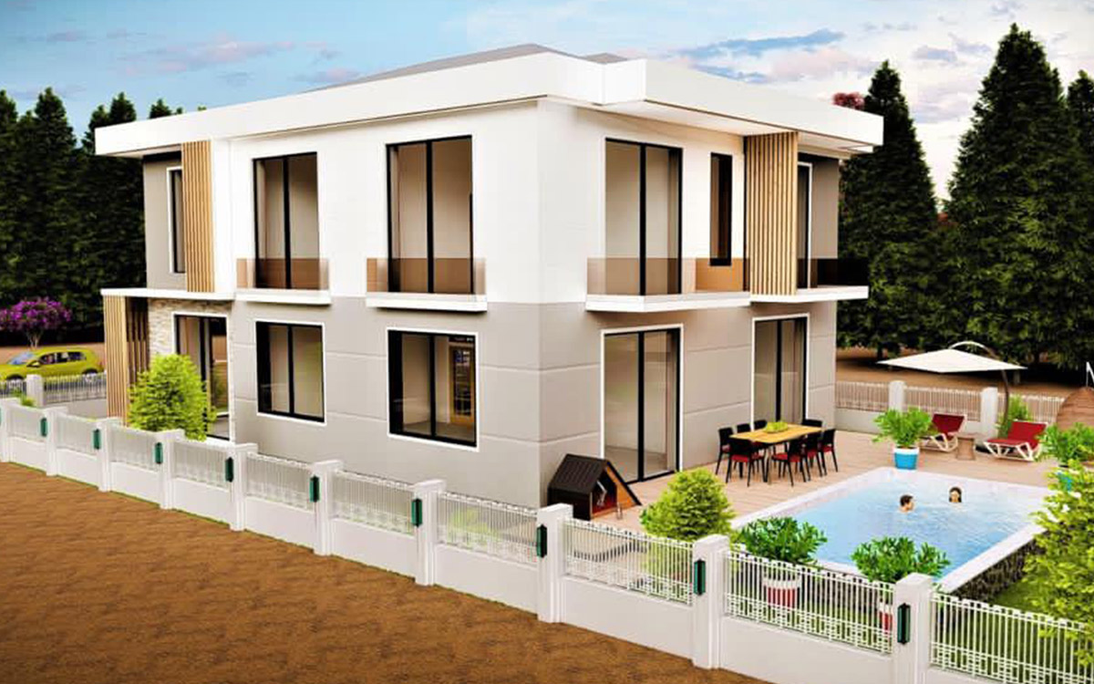 Our project is located in Antalya Province Döeşemealtı District, Düzlerçamı neighborhood. It consists of a building area of 380 m2 and a pool of 32 m2 on a total area of 497.24 m2. The villa has a detached entrance and has 1 pedestrian entrance and 1 vehicle entrance.